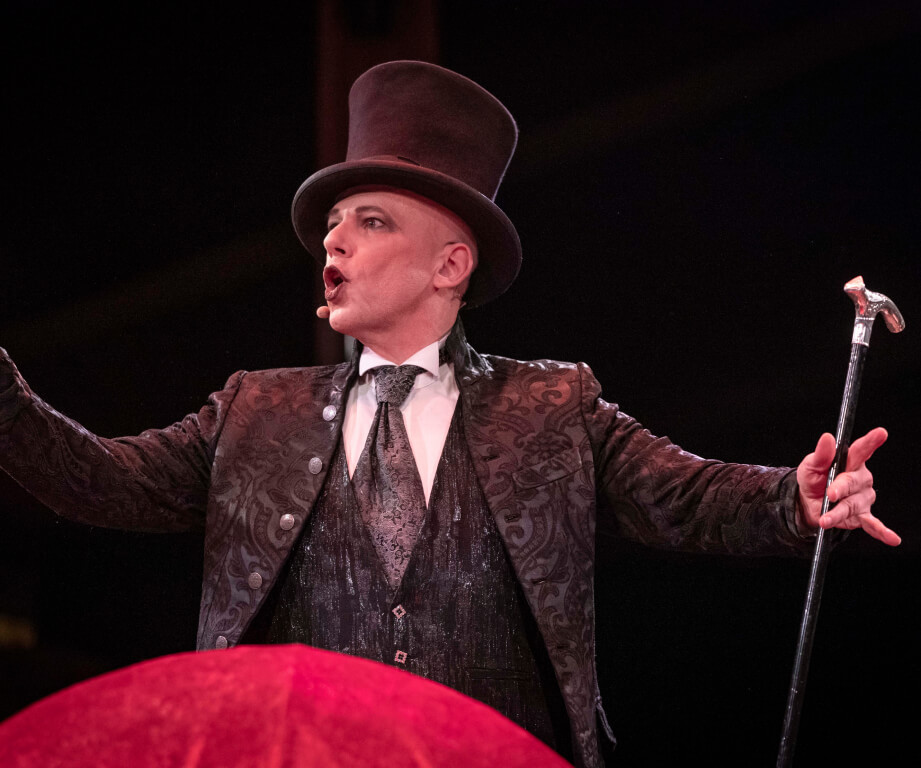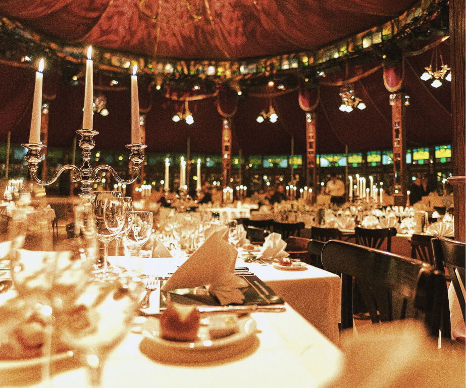 Die zeitlose Eleganz des beheizten Spiegelzeltes bietet den perfekten Rahmen, um seine Besucher in eine vergangene Welt zu entführen und ihn in „The Ultimate Art of Entertainment & Cuisine“ eintauchen zu lassen. Akrobaten, Jongleure, Magier, Clowns, Sänger, Musiker und Künstler gestalten eine Show zwischen traumhafter Poesie und turbulenter Rasanz. Zusammen mit dem exzentrischen Servicepersonal schaffen sie eine Mischung aus Akrobatik, Conférence, Clownerie und Gaumenfreude. Die Trennung zwischen Gast und Personal, zwischen Manege und Auditorium, entschwindet – es entsteht eine einzigartige Atmosphäre zum Wohlfühlen.